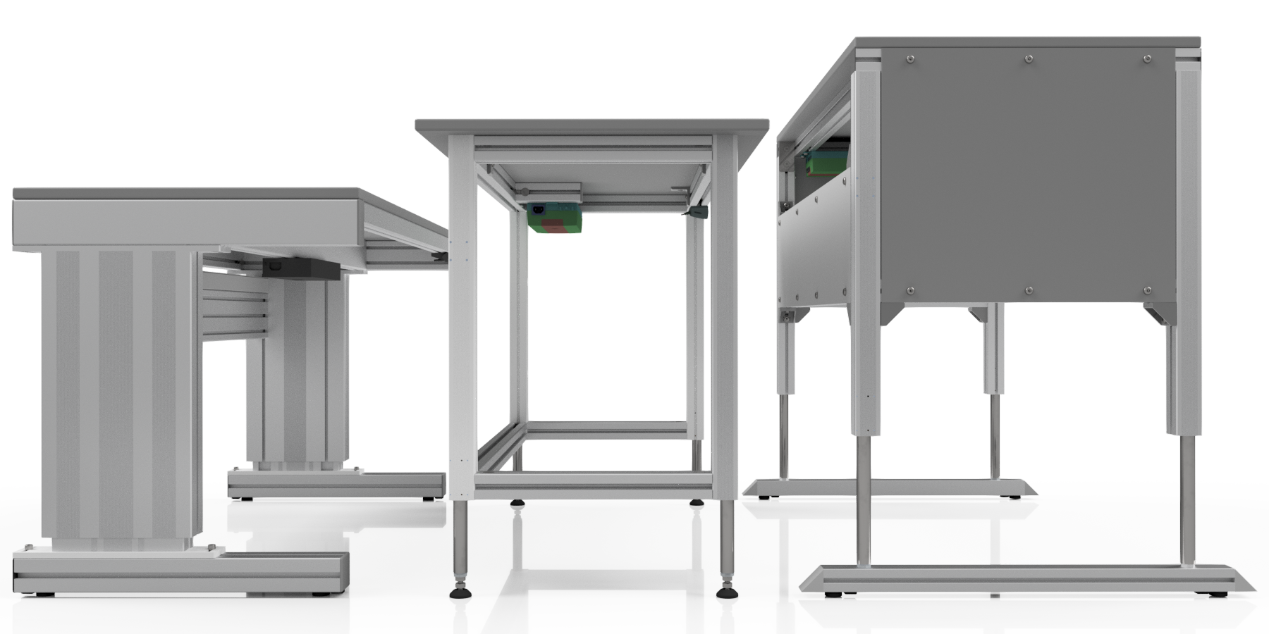 Our systems include work tables, workbenches, shelving, lighting systems, power supply modules and ergonomic accessories such as monitor mounts or tool holders.